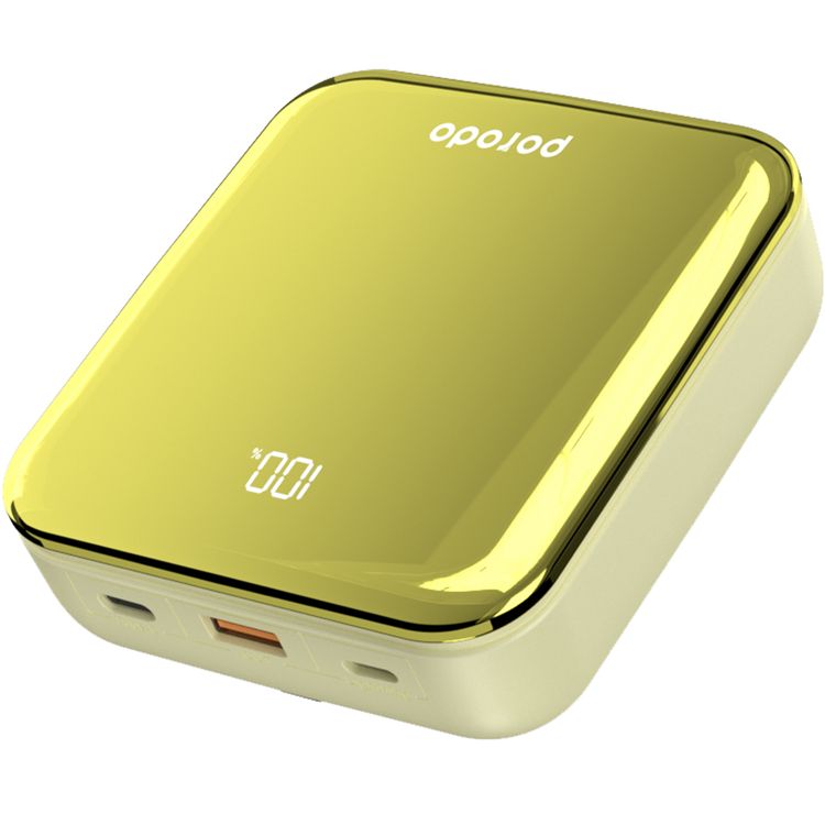 Porodo Compact Power Bank 20000mAh with Out Cable USB-A, Type-C and Lightning, 20W Power Delivery, Simultaneous Charging - Gold