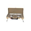Porodo Dual-Burner Foldable Camping Stove with Instant Electronic Ignition, 2500W Thermal Load, Precision Flame Control, 4.5mm Stainless Steel Cooking Grid, Iron Body with Powder Coating Material - Khaki
