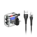 Porodo Dual Output Transparent Charger with 1.2m USB-A to Lightning Cable, 2.4A Auto-ID Technology, 12W Total Output, UK 3-Pin Plug, Simultaneous Charging, Universal Compatibility, Dual USB-A Outputs - Black