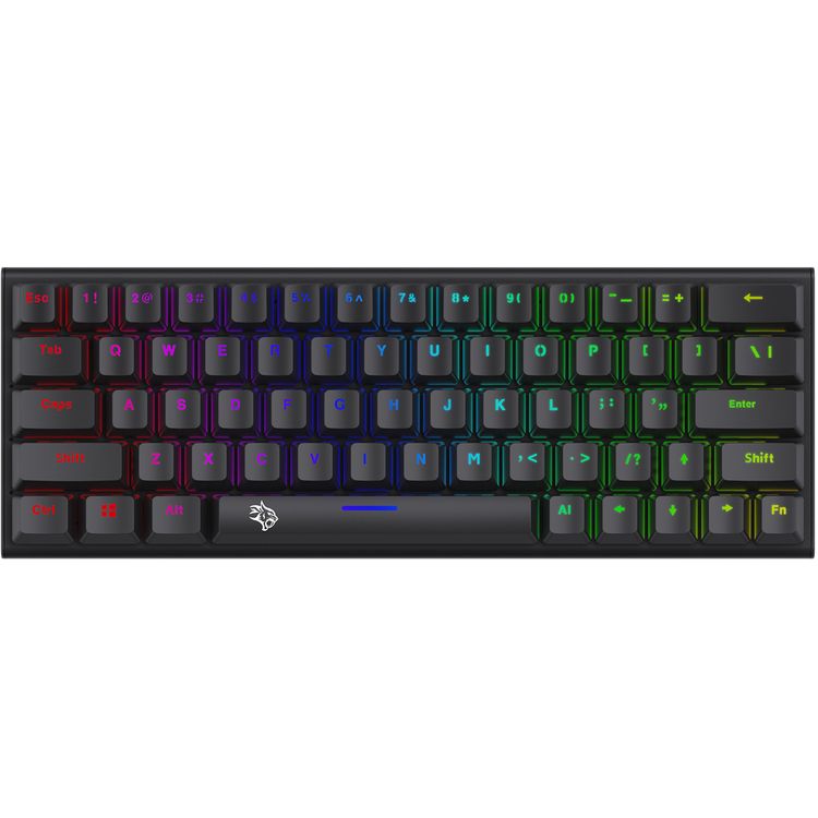 Porodo Gaming 61 English + Arabic Keys Pudding Mechanical Keyboard, 50+ Million Clicks Lifespan, 21 Keys Anti-Ghosting Support, 17 Light Modes, 1.5m PVC USB Cable - Black