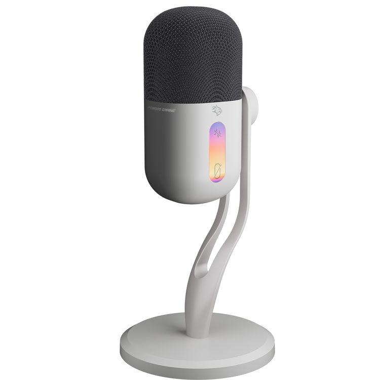 Porodo Gaming Elyx RGB Condenser Microphone with Noise Suppress Button, Adjustable Angle, Crystal Clear Recording, Mute Button, High Sampling Rate, High-Quality Sound, Plug & Play - White