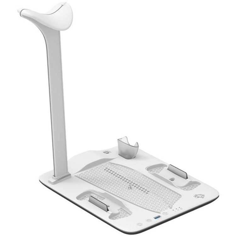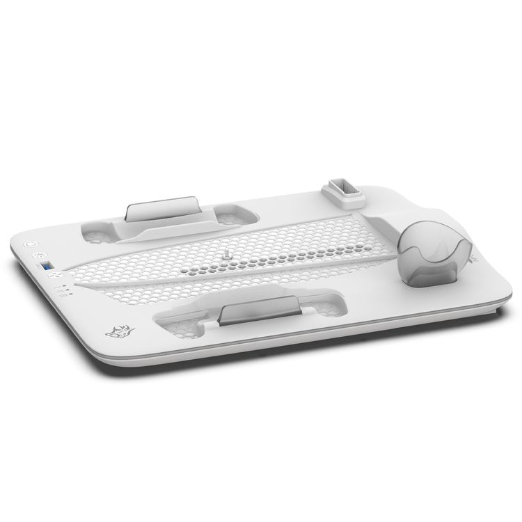 Porodo Gaming PS5 Slim Stand with Magnetic Charger, Built in Safeguards, 5 Disk Slots, Atmospheric Lighting, 4 Hours PS5 Controller Charging, Adjustable Cooling - White