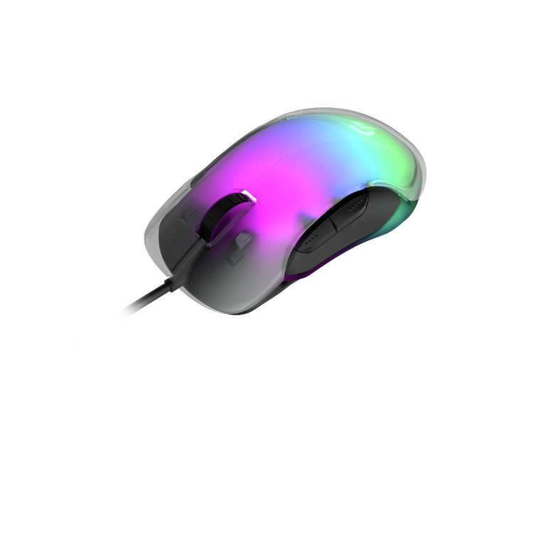 Porodo Gaming RGB 8D Crystal Shell Mouse 12800 DPI - Black / Clear