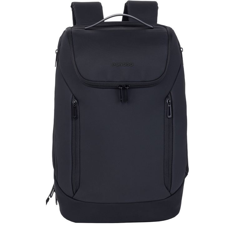Porodo Lifestyle 15.6" Laptop Backpack with 100% Compostable Material, Integrated USB-A & USB-C Charging Ports, Ergonomic Padded Straps, Breathable Back Panel - Black