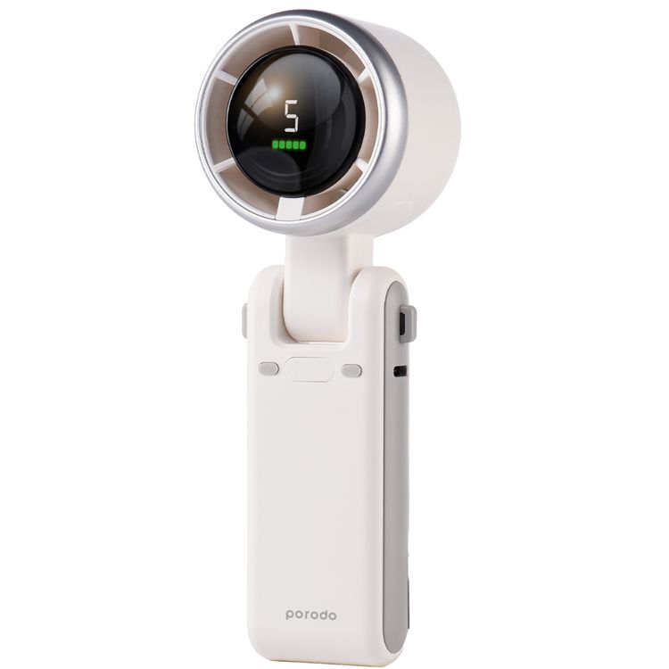 Porodo LifeStyle 3-in-1 Multi Functional 180° Foldable Handheld Turbo Fan, 3600mAh, 10 Hours Working Time, Type-C Charging Port, Digital Display, 3.5 Hours Recharging Time - White