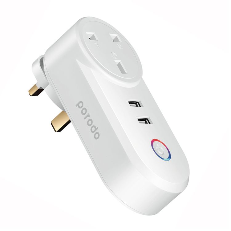 Porodo Lifestyle Smart Wi-Fi Plug with Dual USB-A Ports & AC Socket, Up to 30m Indoor & 50m Outdoor Wi-Fi Range, iOS & Android App Compatibility, Voice Control, Set Schedule, IFTTT, Google Assistant & Alexa Support - White