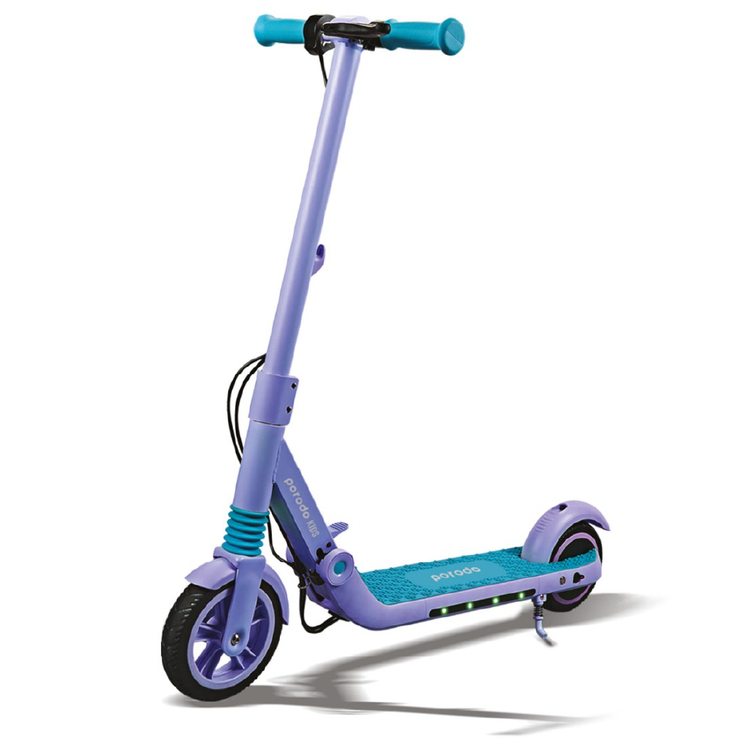 Porodo Lifestyle Electric Kids Scooter comes with 200W and you can find Helmet and knees pad with the scooter in the box. It is safe and functional, and the kids can ride it up to10km on another hand the riding range for this scooter is about 10km. The maximum weight for this scooter is 50kg which means that it is suited for ages between 6-12. The maximum speed for this scooter is 14km/h, it is suited for kids' usage and it is safe. The Braking system for this scooter is an Anti-Lock E-ABS braking system. You can find light strips on this scooter that can be used at night so the others will recognize it easily, also it would be interesting for the kids.