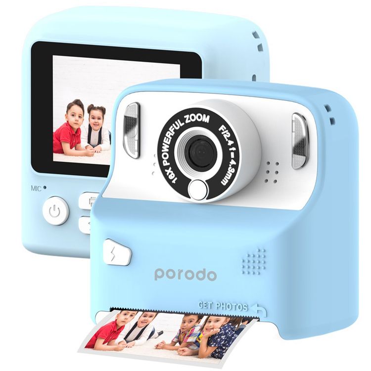 Porodo Lifestyle Kids 10000mAh Print Camera with 320 x 240 Screen Resolution, Type-C Charging Port, 2.4" Wide Screen, Built-in Games, 12MP Image Resolution, Built-in Fill Light - Blue