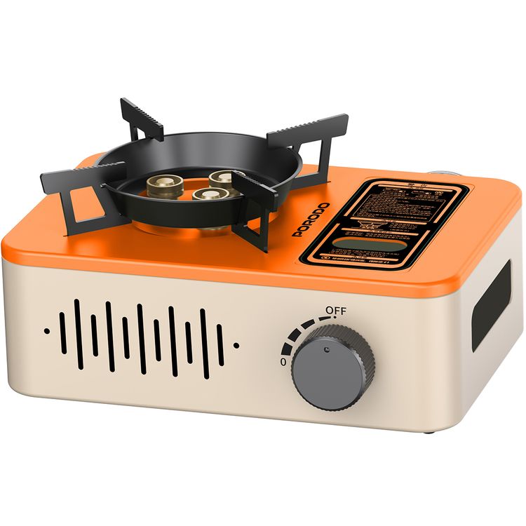 Porodo Lifestyle Portable Outdoor Stove, 230g/h Gas Consumption, Wind Protection, Multi-Level Flame Control, High-Efficiency Cooking - Orange/ White