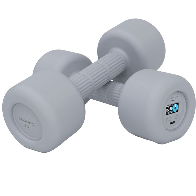 Porodo Lifestyle Smart Dumbbells, Type-C Charging Port, Bluetooth Version 5.1 - Gray