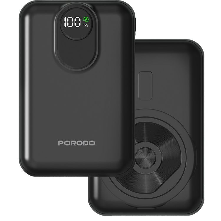 Porodo MAGNEX 20000mAh MagSafe Power Bank with PD 20W, Universal Compatibility, 15W Wireless Charging, Charging, USB-C & Lightning Input/Output - Black