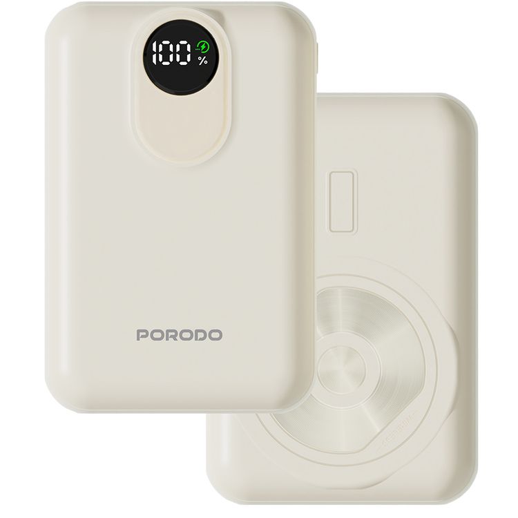 Porodo MAGNEX 20000mAh MagSafe Power Bank with PD 20W, Universal Compatibility, 15W Wireless Charging, Charging, USB-C & Lightning Input/Output - White