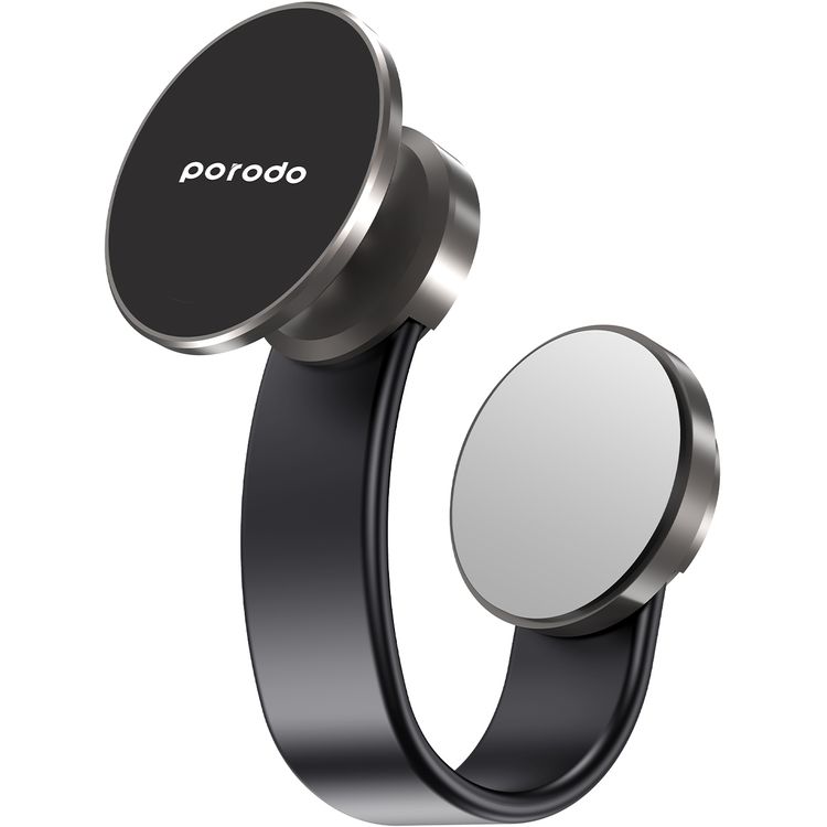 Porodo Magesafe N52 Magnetic Head and Suction Base Car Mount With Flexible and Bendable body, ×42 Embedded Magnets, Adjustable Positioning - Black