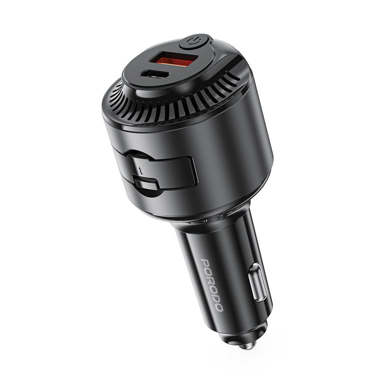 Porodo MistCharge 2-in-1 Car Charger with Air Diffuser, 45W PD, 30W QC, 75W Total Output, Cologne & Ocean Scents, 2 Scent Pads, Universal Compatibility, Fast Charging - Black