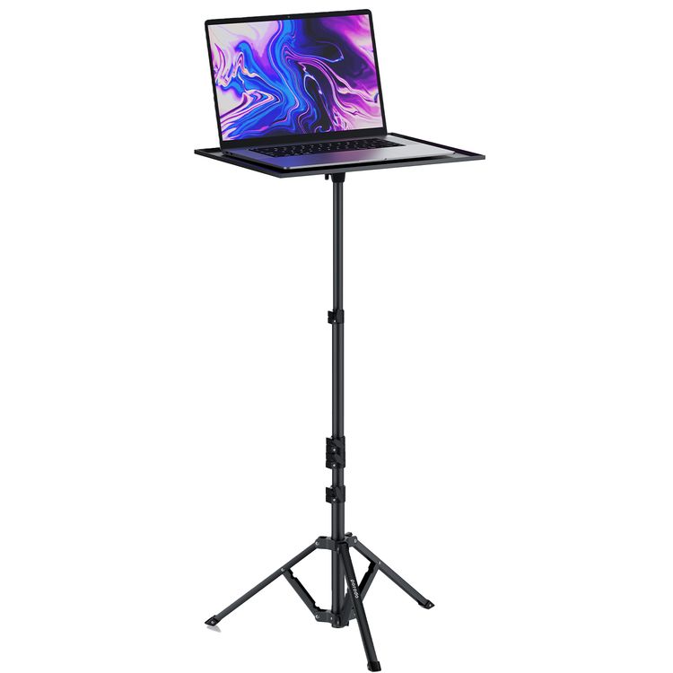 Porodo Multi-Function Stand Projector and Laptop, 360° Tray Rotation, 90° Tray Tilt, Side Tray, 10Kg Tray Load Capacity, Aluminium - Black