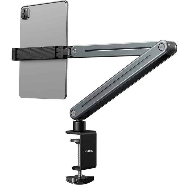 Porodo Multi-Joint Phone & Tablet Mount with Flexible Viewing Angle, Aluminum Alloy Material, Twist & Tilt Functions, Wide Compatibility - Gray