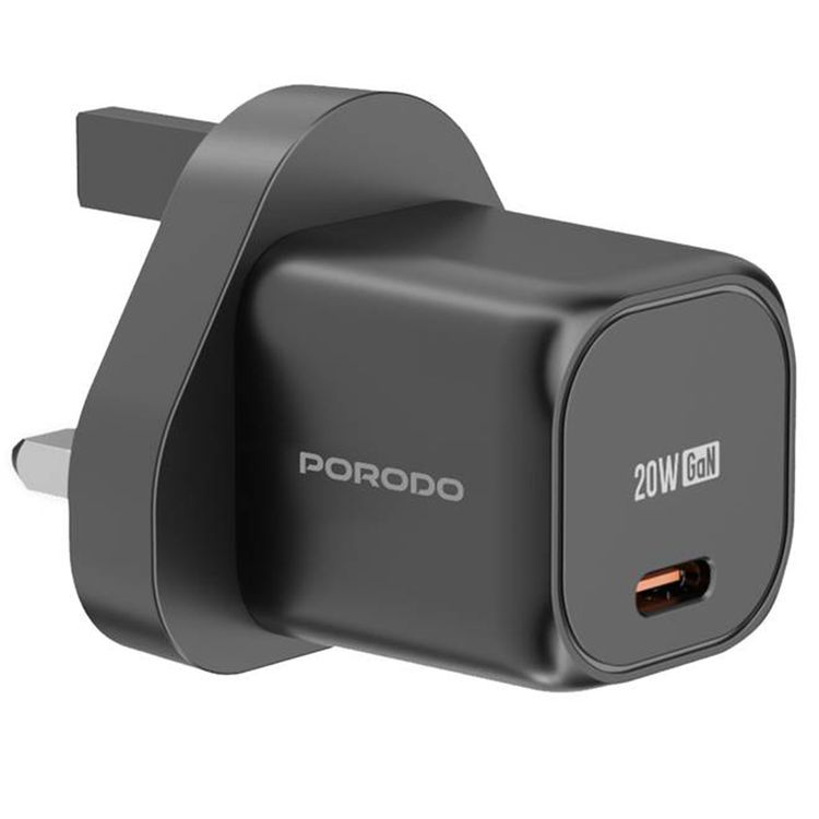 Porodo PD 20W UK Wall Charger with Over-Heat Protection, Universal Compatibility, Reliable Companion, Fast Charging, Lightweight & Portable - Black