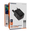 Porodo USB-C Power Delivery Wall Charger with USB-C to Lightning Cable, 1.2m Cable Length, PD 20W, UK Plug, Over-Heat Protection, Reliable Companion, Simultaneous Charging - Black