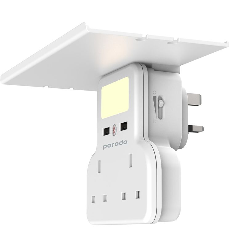 Porodo Multi-Function Socket & Night Light with Built-in Tablet & Phone Tray, 3250W AC Output, Fire-Retardant Material, 12W USB-A Output, Overcharge & Overheat Protection - White