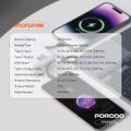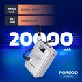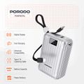 Porodo Petite 20000mAh Power Bank with Integrated Type-C & Lightning Cable, PD 20W, USB-A & USB-C Ports, Fast Charge Support, Digital Display, Universal Compatibility - Silver