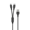Porodo 2-in-1 USB-A Cable with Type-C & Micro USB Connectors, 1.2m Cable Length, TPE & PVC Materials, More than 5000 Bends Lifespan, 2.4A Current, Fast Charge & Data Sync - Black
