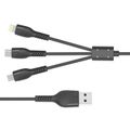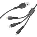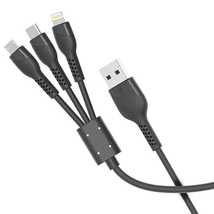 Porodo PVC 3 in 1 Cable 1.4 M, 3 in 1 Multiple USB Charger Cable with Lightning/USB Type C/Micro USB Connector, Compatible for Devices with Lightning/Type C/Micro USB Cable - Black