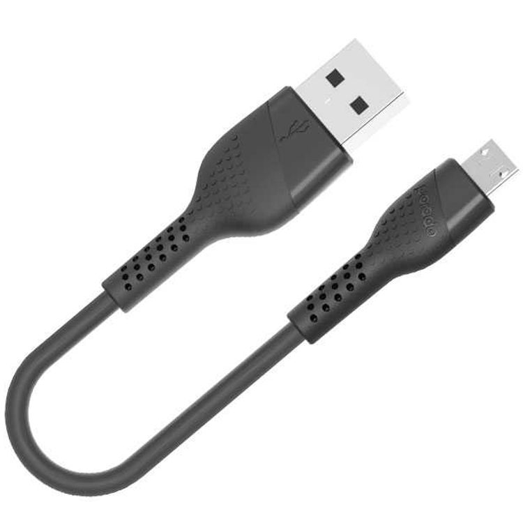Porodo PVC Micro USB Cable 0.25m, Fast Charging, Data Sync, Super Durable, Compatible with Samsung, Huawei, Ulefone, Nokia, Sony - Black