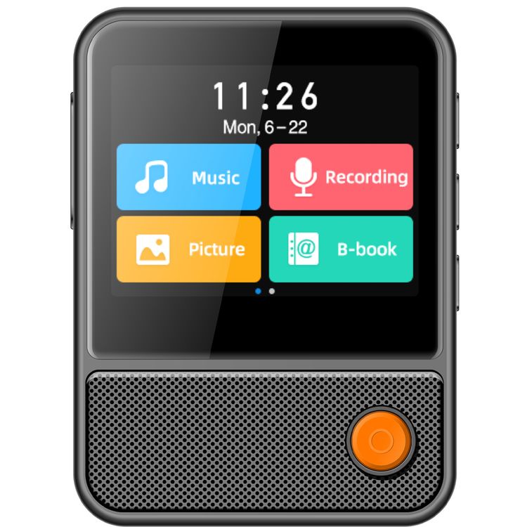 Porodo Soundtec Speaker MP3 Player with Earphone, High-Fidelity Audio, 2.31" Touch Display, Audio Recording - Black
