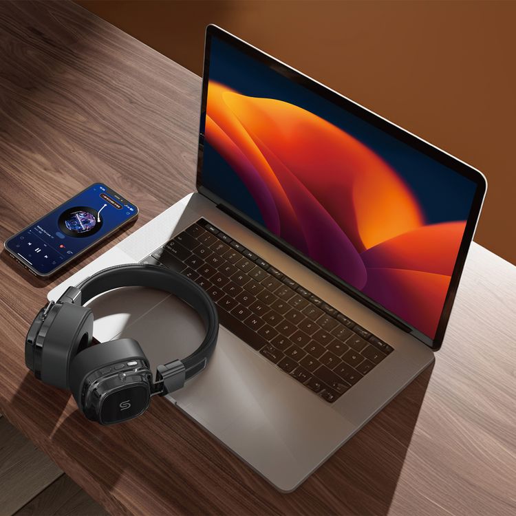 Porodo Soundtec Vintage Wireless ENC Headphones, Up to 12 Hours Battery Life, 10m Transmission Distance, 350mAh Battery Capacity, 2 Hours Recharge Time - Black