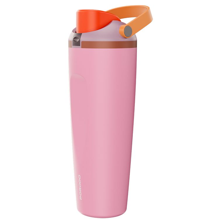 Porodo Stainless Steel Double-Walled Bottle with 900mL Capacity, Leak-Proof Seal, Plastic Straw Included, Portable Design, High-Capacity Hydration - Pink