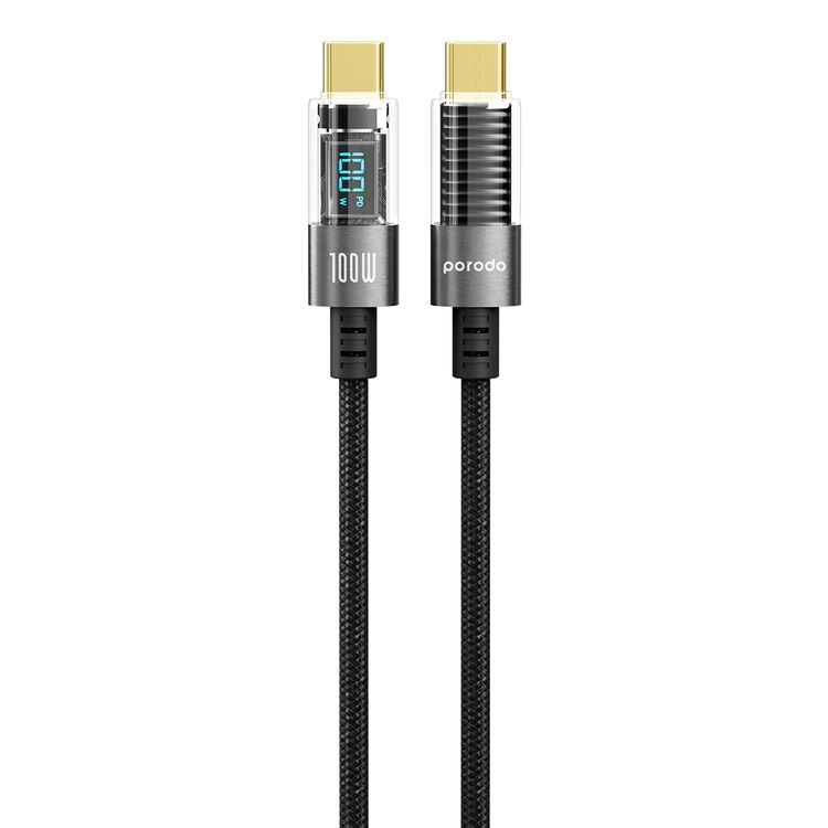 Porodo Transparent Braided Charging and Data Cable, 1.2M - Black