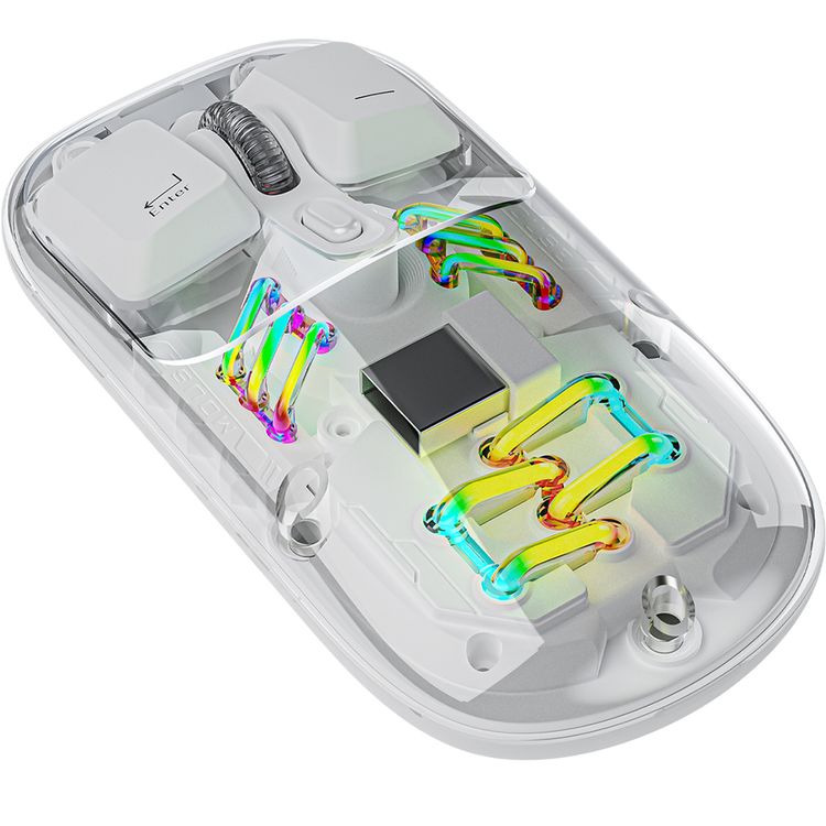 Porodo Transparent Dual-Mode Wireless Mouse with Adjustable DPI Up to 1600, RGB Lights, 400mAh Battery Capacity, Wireless 2.4 GHz & Bluetooth Connections - White