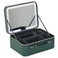 Porodo Travel Makeup Bag with Detachable 12" LED Mirror, 2000mAh Battery, 100 LED Beads, 2800K-6500K Color Temperature, 3 Light Modes, Multiple Compartments - Green