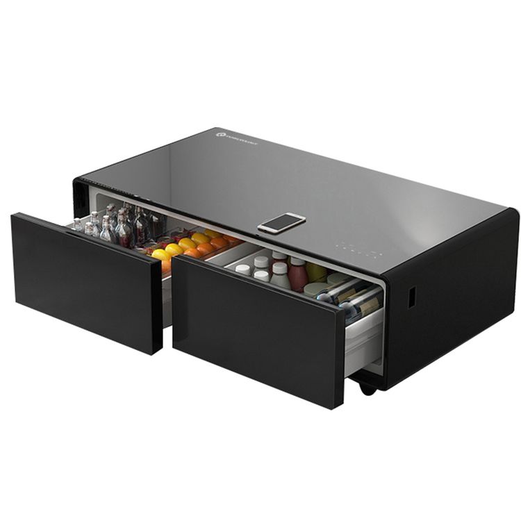 Powerology 135L Coffee Table Fridge with LED Display, 2 Drawers, Wireless Charging, Quiet Operation, Compact Design, USB and Type-C Charging Port, Glass Top - Black