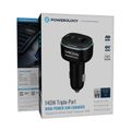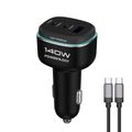 Powerology 140W Triple-Port High-Power Car Charger with USB-C to USB-C Cable, 140W Total Output, LED Ambient Light, Fast Charge, USB-A & Dual USB-C Ports, Zinc Alloy with Oil Painting Finish Material - Black / Gray