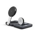 Powerology 3-in-1 Multi-Device Charging Stand with Active Cooling System, 15W Wireless Charging, Type-C Port, Smart & Portable Design, MagSafe Compatibility - Black