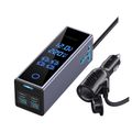 Powerology 300W Car Power Inverter with Voltage Monitor Display, Dual AC Outlets, Dual USB-A & Dual USB-C Ports, 36W Power Delivery, Simultaneous Charging Capability, 54cm DC Output Socket, Built-in Safeguards - Gray