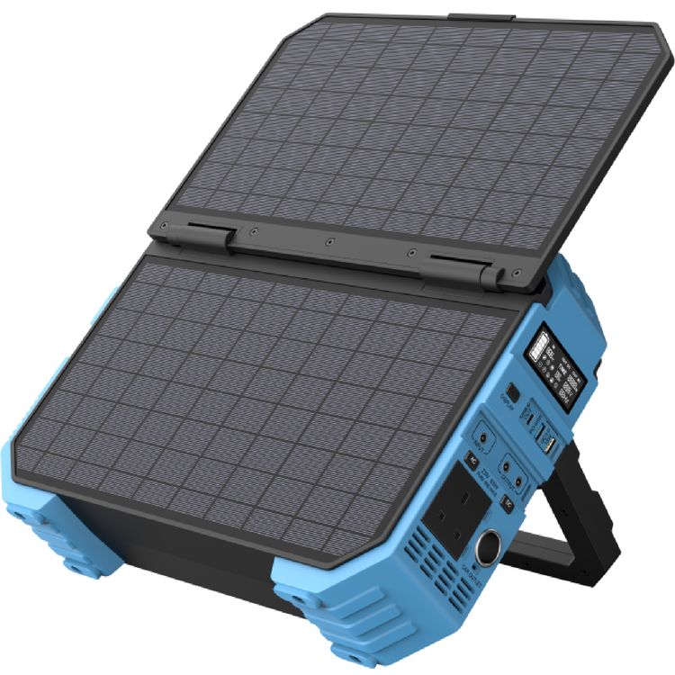 Powerology 600W 192000mAh Portable Generator Integrated Solar Panel, PD 65W, Solar Panel 30W, 18W QC 3.0 - Blue