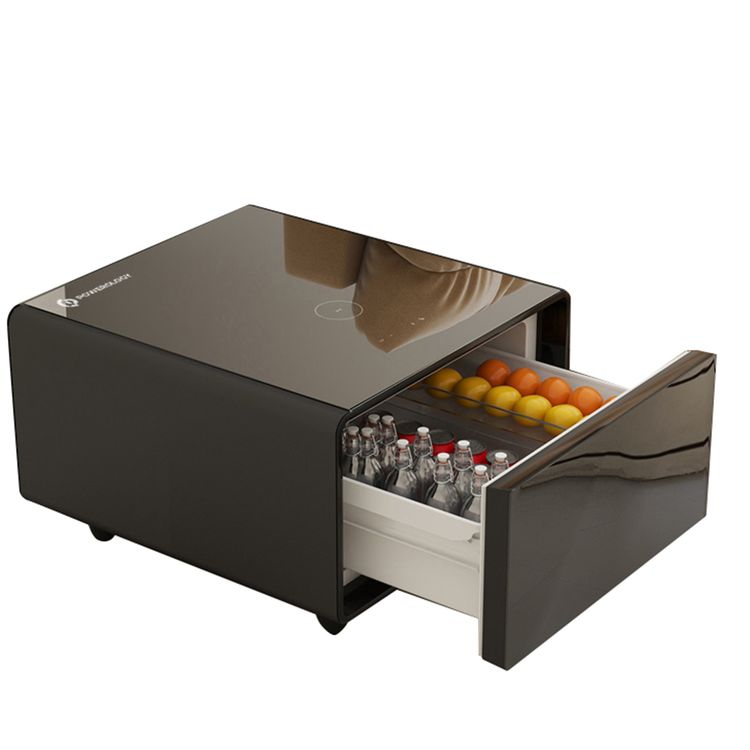 Powerology 65L Mini Side Table Fridge with LED Display and Wireless Charger, Compact Design, Glass Top, USB & Type-C Charging Port, Quiet Operation, Touch Display, 2 AC Sockets - Black