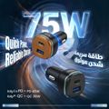 Powerology 75W Dual-Port High-Power Car Charger, USB-C & USB-A Ports, 75W Total Output, 45W Power Delivery, LED Ambient Light, Fast Charge, Zinc Alloy with Oil Painting Finish Material - Black / Gray