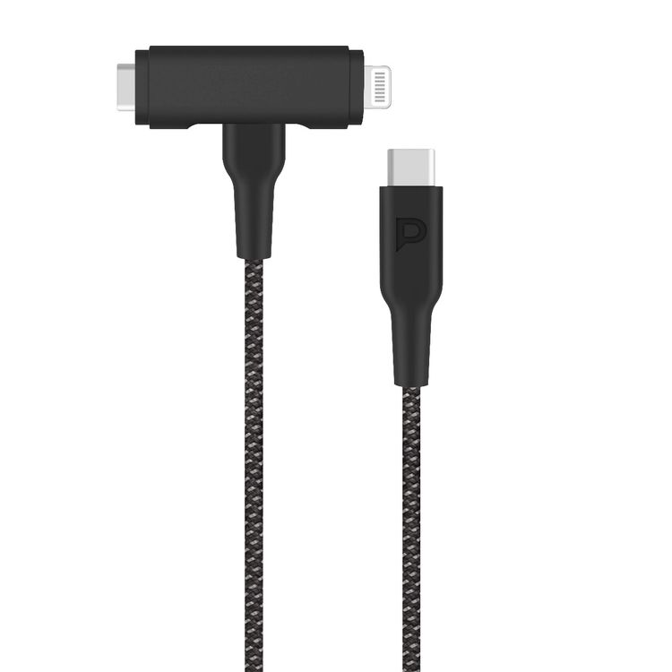Powerology 1.2m/4ft Braided Cable USB-C to USB-C and Lightning, PD 60W, Compatible with iPhone and iPad, More Than 30000 Bends Lifespan - Black