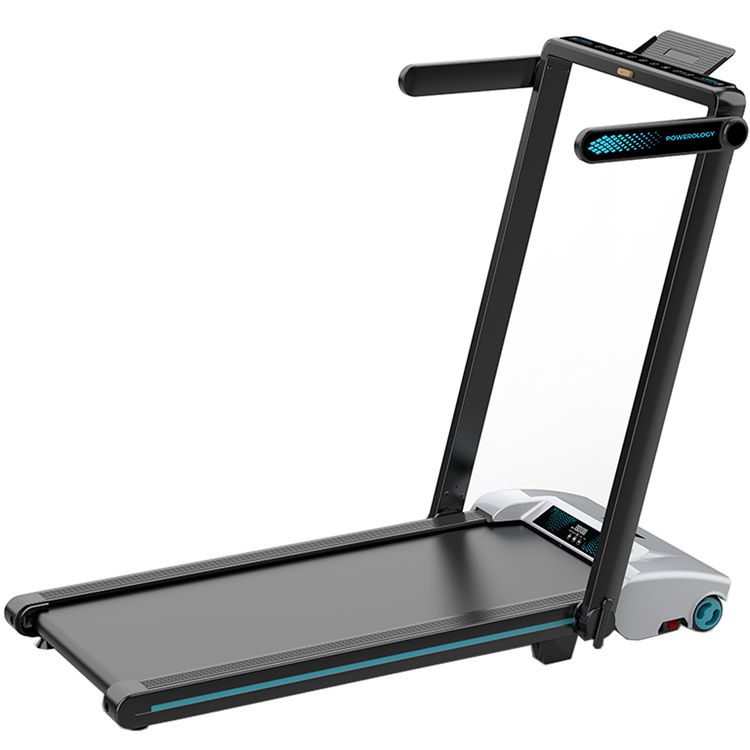 Powerology Incline Folding Treadmill with Walking & Running Modes, Up to 120kg Load Capacity, 3-Pin UK Plug, 5 Incline Levels, 1-12km/h Speed Range - Black