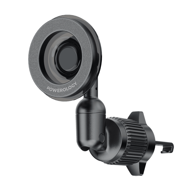 Powerology Logan 360° Rotation Head MagSafe Car Phone Holder with Strong Magnetic Hold, 4 Flexible Rotating Joints, Adjustable Viewing Angle, One-Handed Operation, Air Vent Clip, 18× N52 Powerful Magnets, Horizental & Vertical, 18N Magnetic Force, ABS+ PC+ Aluminum Material - Black