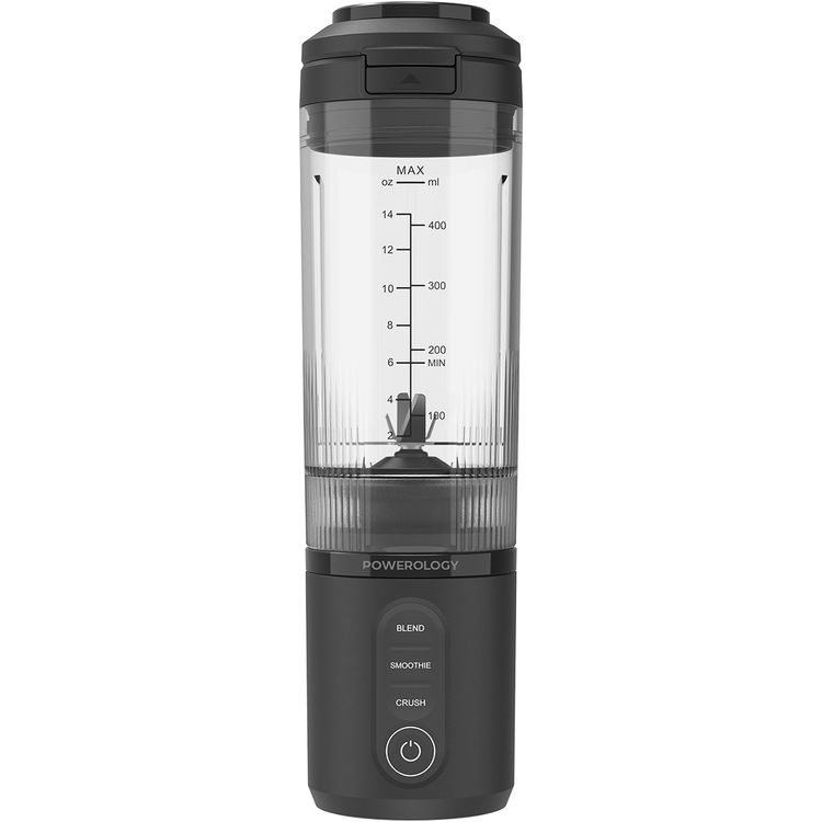 Powerology MagBlend Portable Blender with Magnetic Phone Mount, 6 Sharp Steel Blades, Powerful Ice Crushing, Multi-Mode Blending, 470mL Capacity, Fits to Car Cup Holders - Black