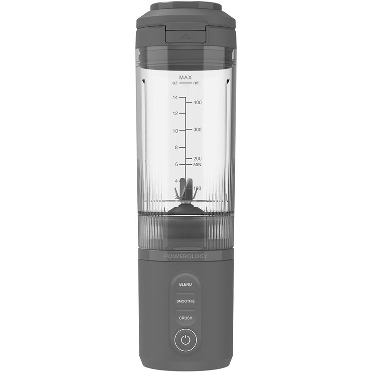 Powerology MagBlend Portable Blender with Magnetic Phone Mount, 6 Sharp Steel Blades, Powerful Ice Crushing, Multi-Mode Blending, 470mL Capacity, Fits to Car Cup Holders - Gray