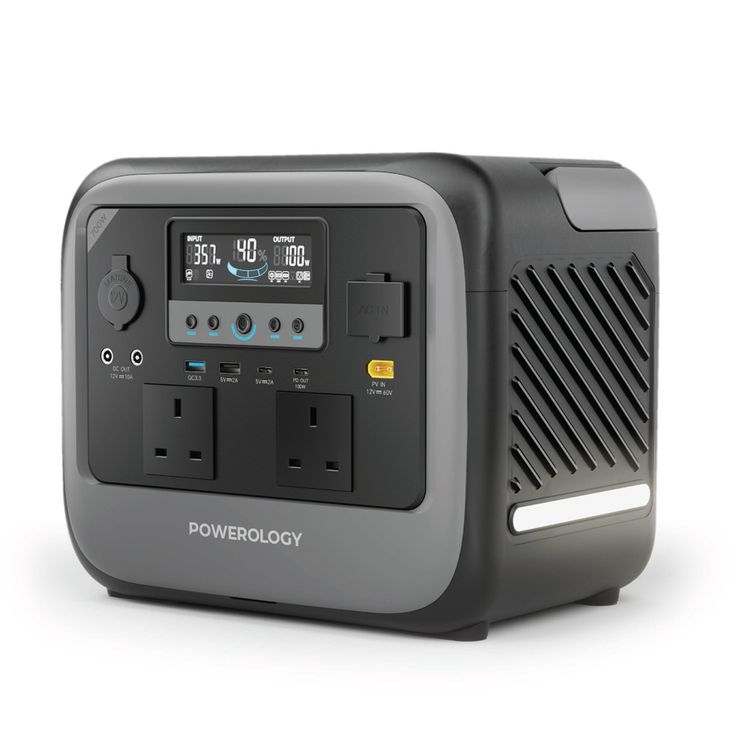 Powerology Pater II Portable Power Station with 700W Rated Power, 1400W Peak Power, 472.5Wh Battery Capacity, 230V Voltage, 350W Max Solar Input, PD 100W Max USB-C Output, 15W Wireless Output, 120W Max Car Port Output, 2x AC Outlets, Power Monitoring Display, Built-in Safeguards - Gray