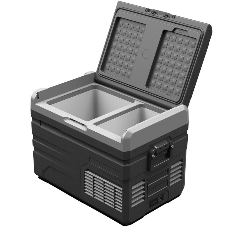Powerology Smart Dual Compartment Fridge and Freezer Versatile Cooler for Outdoor Adventure, 37.5 Liter, 12h Battery Life, IOS & Android Compatible - Gray