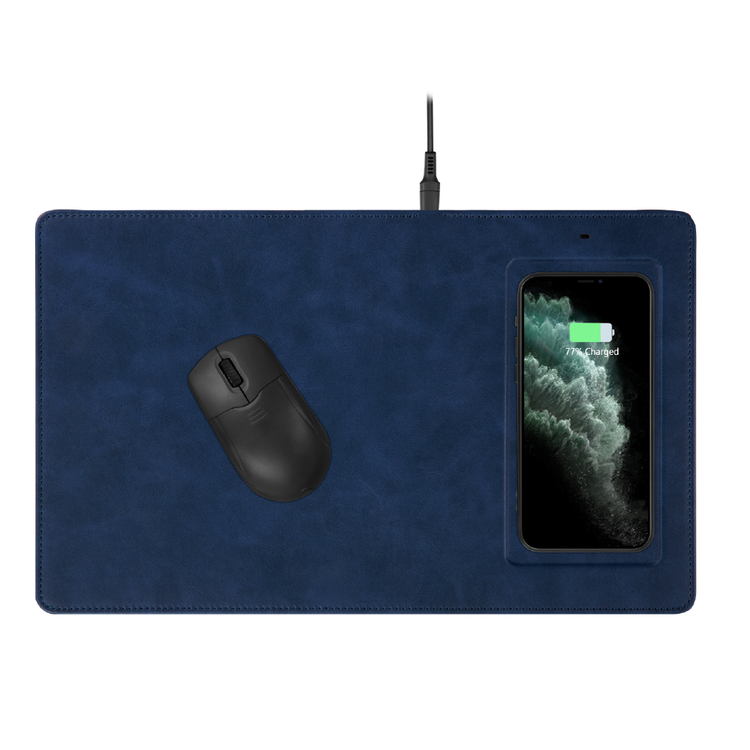 Powerology PU Leather Qi Wireless Charging Mouse Pad 10W, Case-Friendly, Fast Wireless Charging Mouse Mat Compatible for 12/12 Pro/12 Pro Max/11/11 Pro/11 Pro Max, Samsung Galaxy S10/S9/S8/Note 10 - Navy Blue