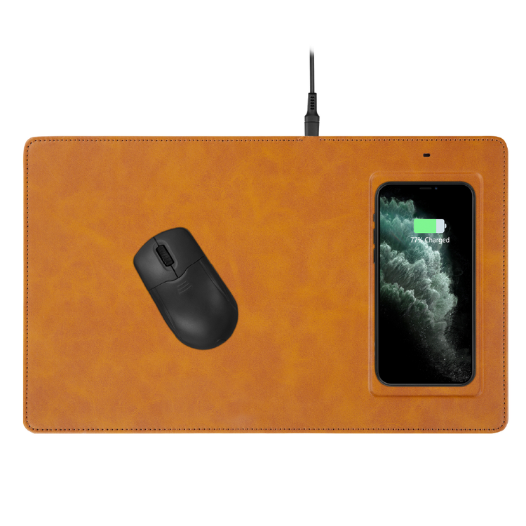 Powerology PU Leather Qi Wireless Charging Mouse Pad 10W, Case-Friendly, Fast Wireless Charging Mouse Mat Compatible for 12/12 Pro/12 Pro Max/11/11 Pro/11 Pro Max, Samsung Galaxy S10/S9/S8/Note 10 - Cognac