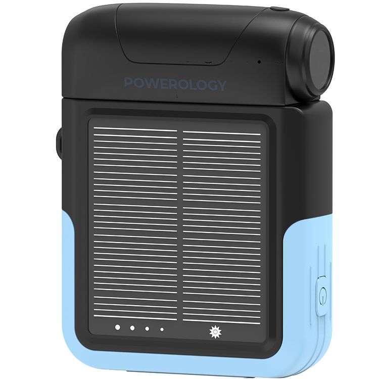 Powerology Santé 10000mAh Solar Power Bank with 2000mAh Detachable Flashlight, PD 20W Max USB-C & QC 22.5W USB-A Output Ports, 150 Lumens Flashlight Brightness, Efficient Solar Charging, Built-in Safeguards, Portable and Rugged Design, LED Indicator Lights, Multi-mode Lighting - Black